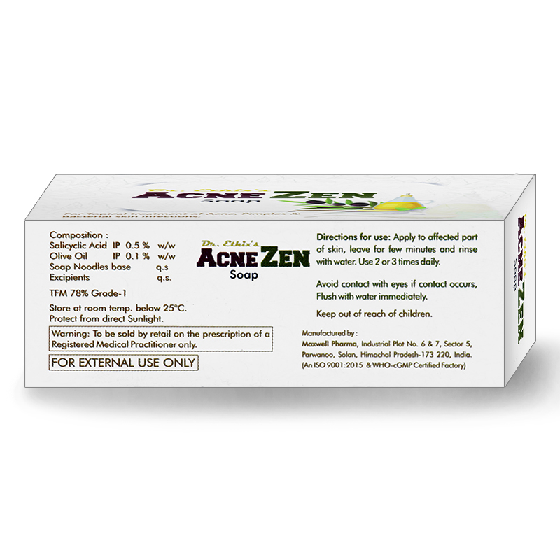 Directions for Use: Use AcneZen Soap twice daily. Wet the affected area, lather with the soap, and gently massage for 1-2 minutes before rinsing thoroughly. Follow up with a suitable moisturizer, as recommended by your dermatologist.