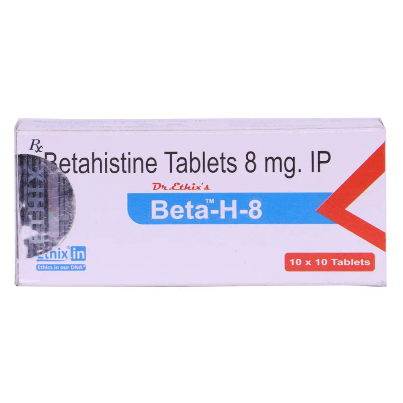 Beta H 8 is a medication containing Beta Histine 8 mg, used to treat and manage symptoms related to vertigo, dizziness, and tinnitus. It works by improving blood flow to the inner ear, which helps maintain balance and alleviate symptoms associated with inner ear disorders.