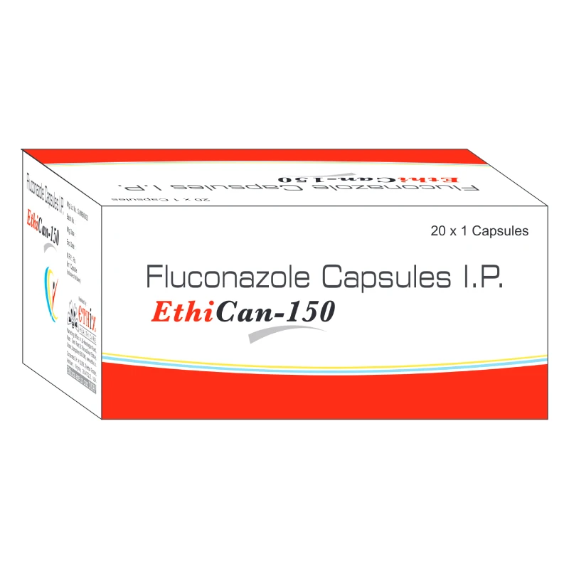 EthiCan 150 is an antifungal Capsulesule containing Fluconazole 150 mg, formulated to effectively treat and prevent a range of fungal infections. Fluconazole works by disrupting the formation of the fungal cell membrane, leading to the elimination of fungal cells and relief from infection-related symptoms. EthiCan 150 is commonly used to treat conditions such as vaginal yeast infections, oral thrush, and certain systemic fungal infections.