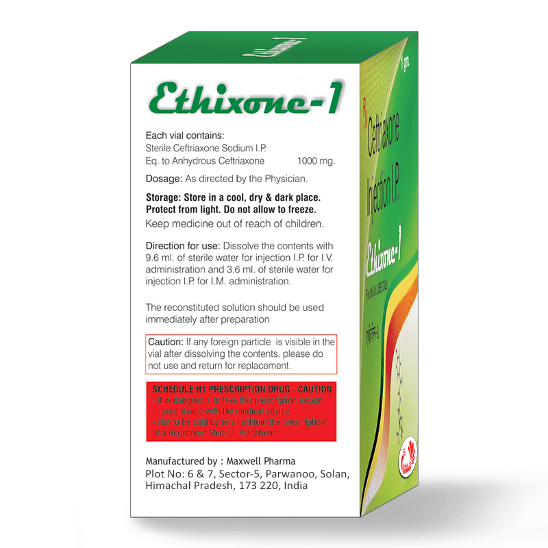 - Composition: Ceftriaxone-1 g (W.F.I.)