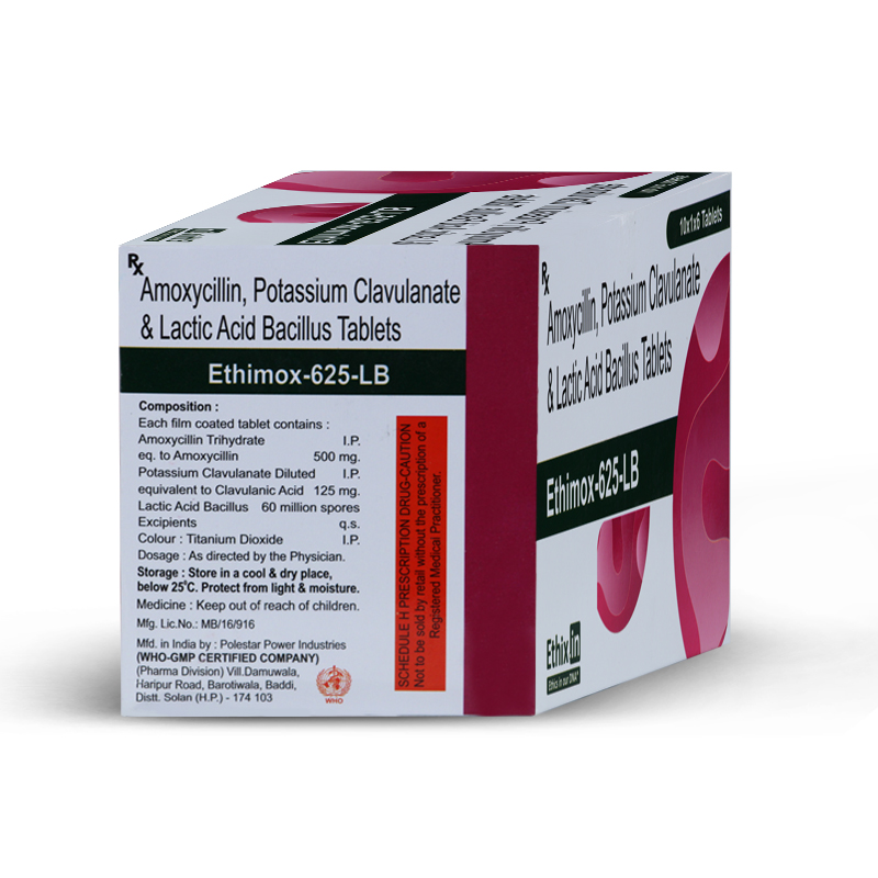 Ethimox-625 LB combines the trusted efficacy of Amoxycillin and Clavulanic Acid with the added benefit of LB for comprehensive treatment and improved patient comfort.