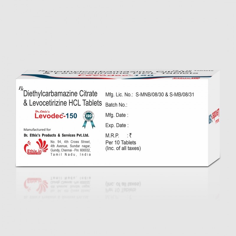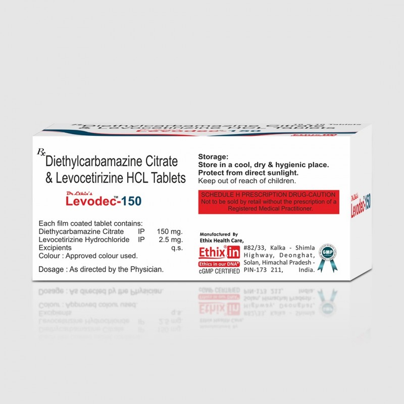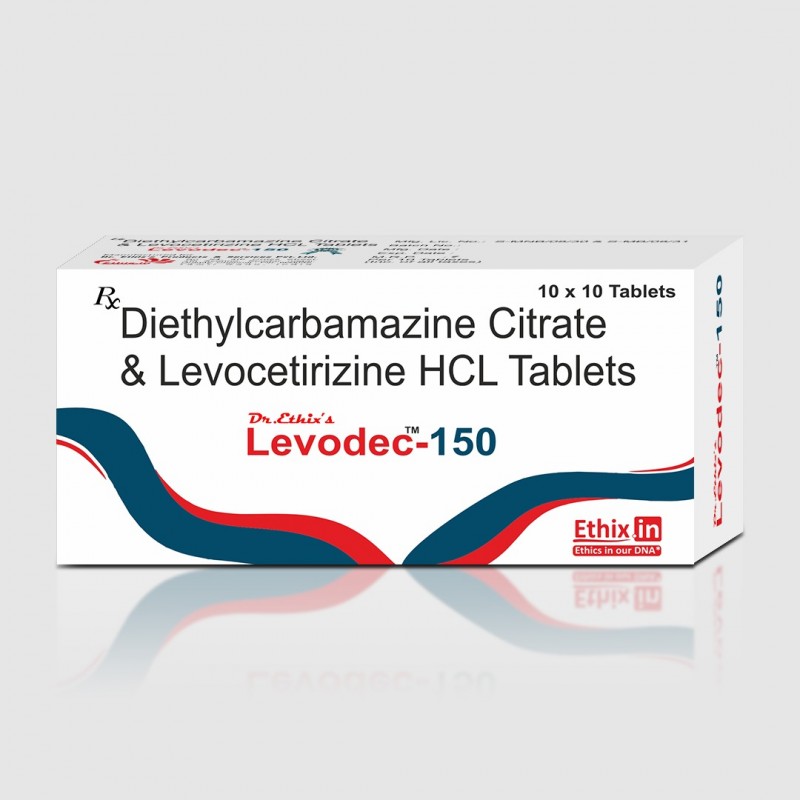LevoDec 150 is a combination tablet designed to treat filariasis and allergic conditions. It contains two active ingredients: DiEthylCarbamazine Citrate, an anti-parasitic agent effective against filarial infections, and Levocetirizine, an antihistamine used to alleviate allergic symptoms. This combination makes LevoDec 150 an ideal treatment for conditions like elephantiasis, lymphatic filariasis, and allergic rhinitis.