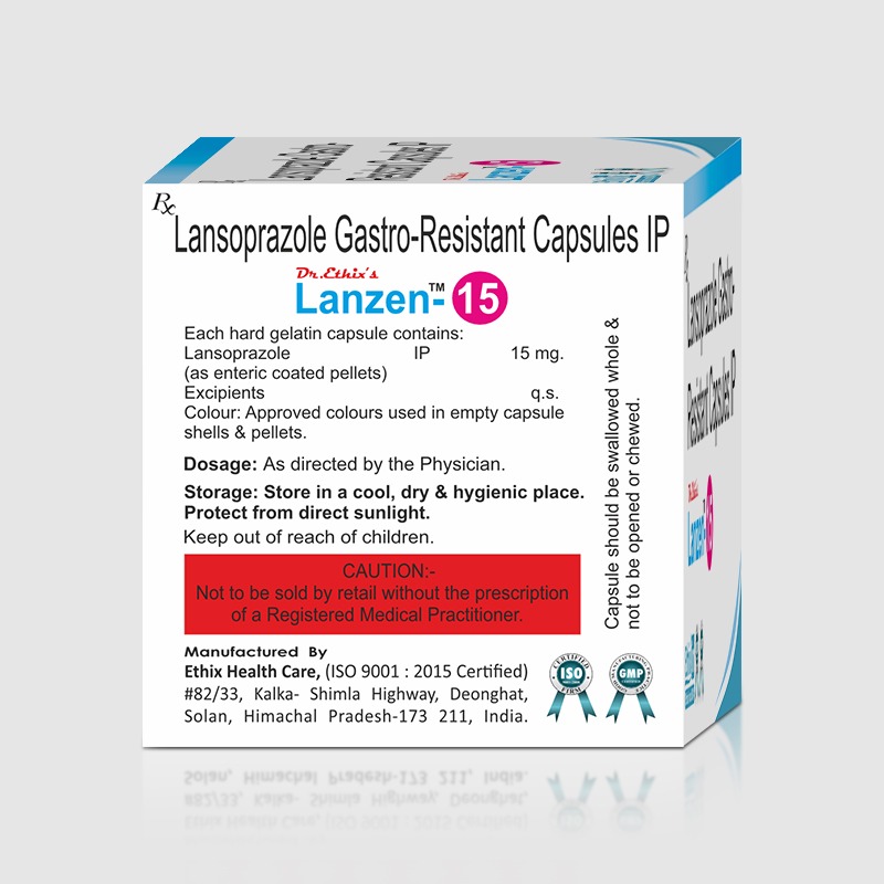 LanZen-15 contains Lansoprazole 15 mg, a proton pump inhibitor (PPI) formulated using Gastro Release Technology. It effectively reduces stomach acid production, providing relief from conditions like GERD, ulcers, and gastritis. The advanced formulation ensures that the active ingredient is absorbed in the small intestine, enhancing its efficacy and minimizing stomach irritation.