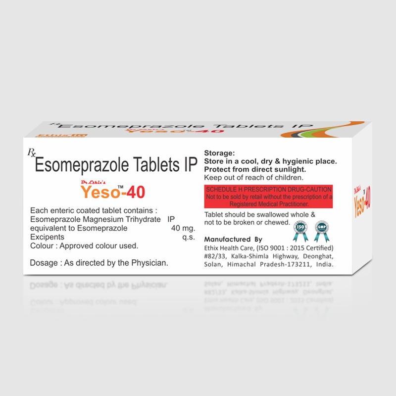 YesO 40 contains Esomeprazole, a proton pump inhibitor (PPI) designed to reduce stomach acid production. It is widely used to treat and manage acid-related conditions, ensuring relief from discomfort and promoting healing of the gastrointestinal lining. Esomeprazole works by inhibiting the H+/K+ ATPase enzyme system in the gastric parietal cells, effectively reducing acid secretion.