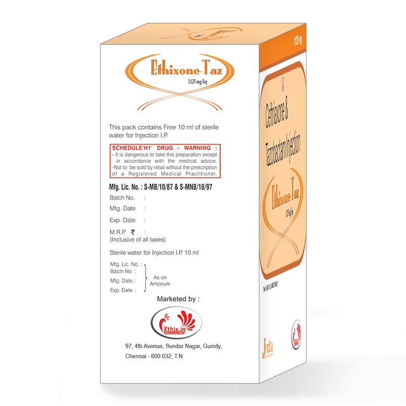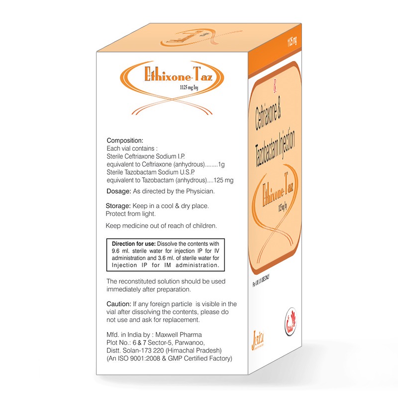 - Composition: Ceftriaxone-1 g + Tazobactam-125 mg (W.F.I.)