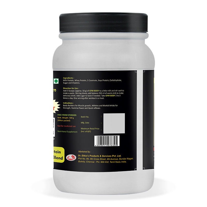 - Ethix Gym body powder is the easiest way to get healthy and strong muscles. Milk protein, whey protein and C-Caseinate in gym body powder are helps to protect muscles from break down.