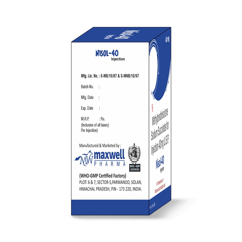NiSol 40 is an injectable corticosteroid containing Methylprednisolone, a potent anti-inflammatory and immunosuppressive agent. It is used to manage a wide range of medical conditions involving inflammation and immune system disorders.