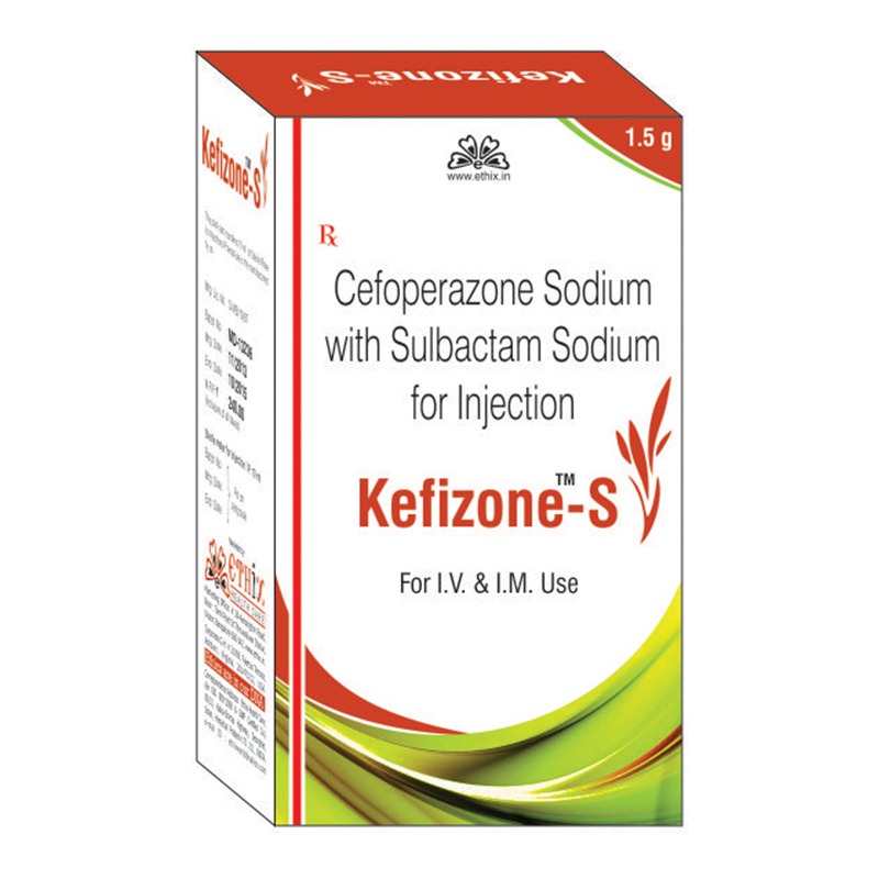 KefiZone 1.5 S is a combination of Cefoperazone, a third-generation cephalosporin antibiotic, and Sulbactam, a β-lactamase inhibitor. This combination enhances antibacterial efficacy by overcoming resistance mechanisms in β-lactamase-producing bacteria. It is designed for the treatment of severe bacterial infections caused by multidrug-resistant pathogens.