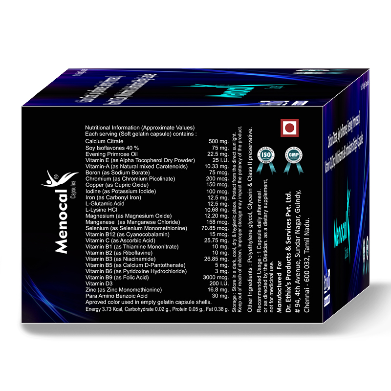 Menocal with Iso soy flavones are well known phytoestrogens - active substances derived from plants that have a weak estrogen-like action. Iso Soy flavones in Menocal have been reported to provide a number of health benefits, including the promotion of heart health and the maintenance of bone health in post-menopausal women.