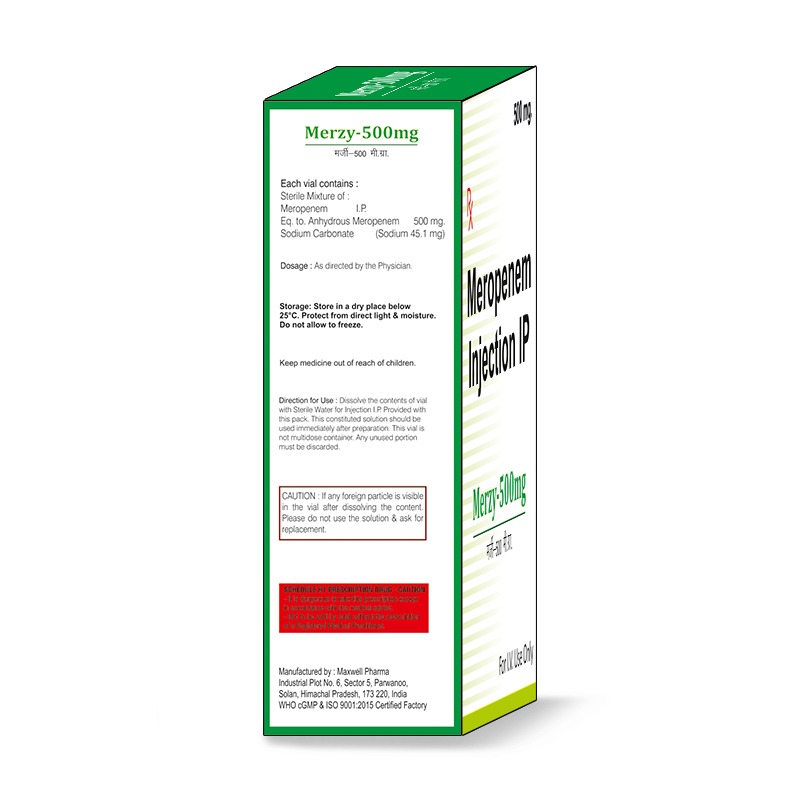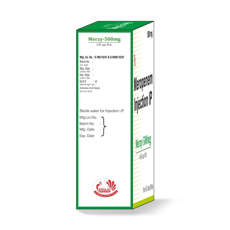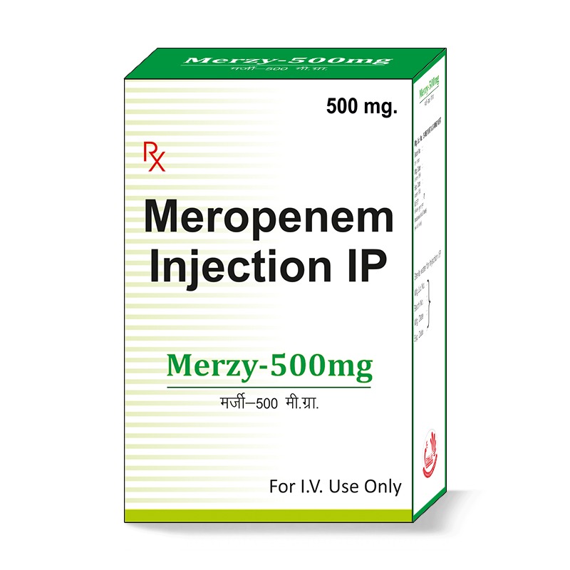MerZy-500 Injection belongs to a group of medicines called carbapenem antibiotics. It works by killing bacteria which can cause serious infections. It is a versatile medicine used to treat many different types of bacterial infections such as infections of the brain (meningitis), lungs (pneumonia), abdomen, urinary tract, skin, blood, and heart. This medicine is usually given as an injection by a doctor or nurse.