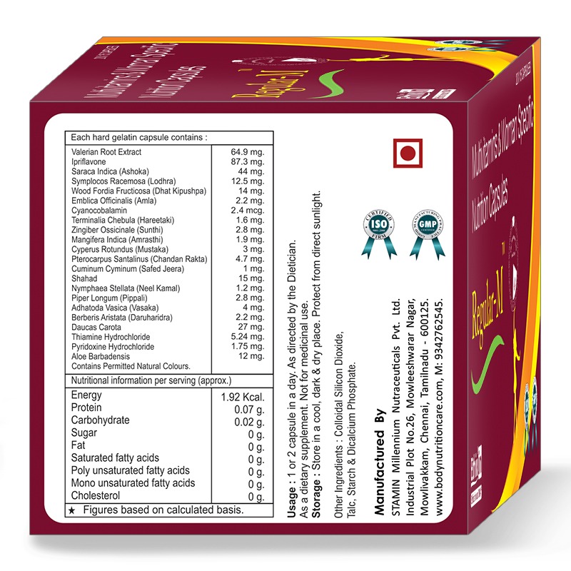 - Composition: Menstrual Regulating Herbal Exts. & Vitamins