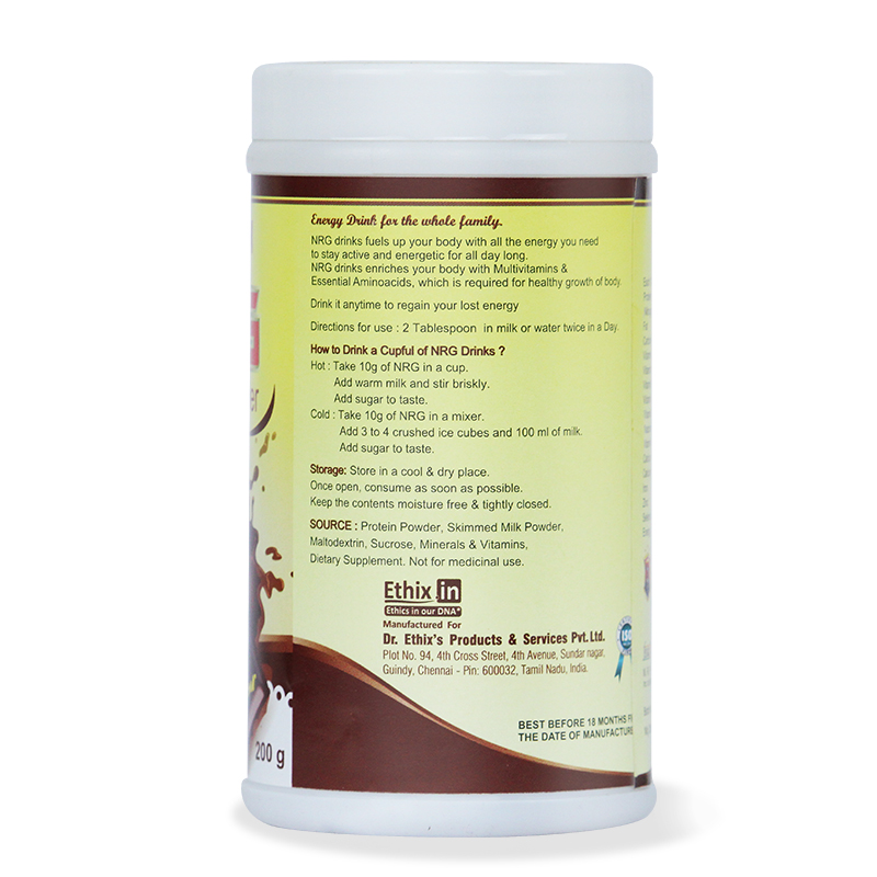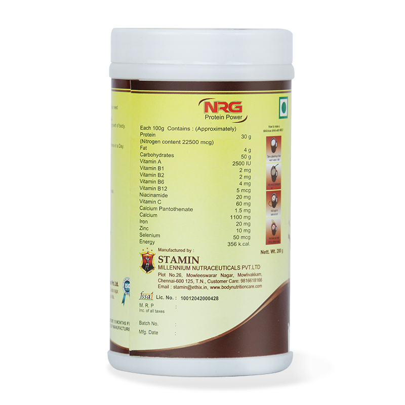 The body needs these nutrients for reproduction, maintenance, growth and regulation of bodily processes. NRG (Chocolate) 200 g with multivitamins may contain many of these vitamins and minerals, but in varying forms and amounts. They can also contain other ingredients like herbs, amino acids and fatty acids.