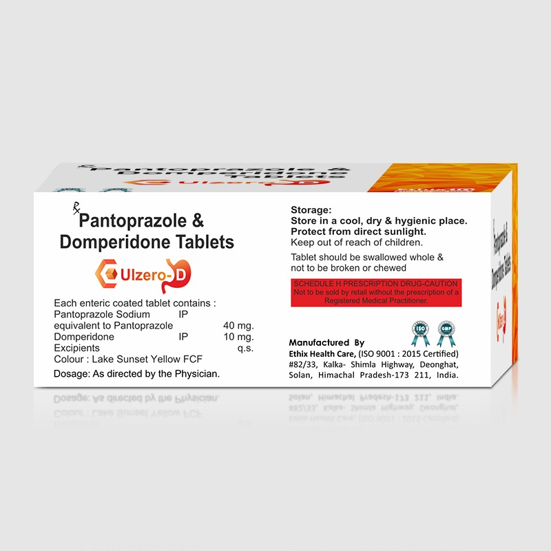 Ulzero D is a combination medication containing Pantoprazole and Domperidone, designed to effectively manage gastroesophageal reflux disease (GERD), gastritis, and functional dyspepsia. This dual-action formula helps reduce stomach acid production and alleviates nausea, vomiting, and bloating, providing comprehensive relief from digestive discomfort.