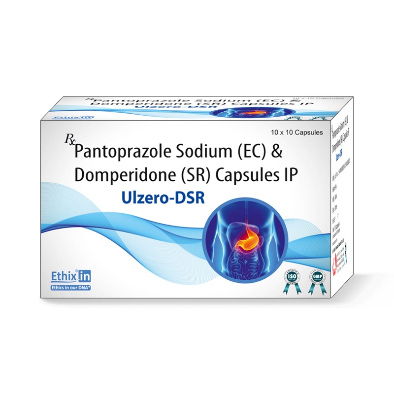 Ulzero DSR is a dual-action medication that combines Pantoprazole and Domperidone to effectively manage gastroesophageal reflux disease (GERD), peptic ulcers, and other gastrointestinal conditions. It offers a sustained release formulation designed to provide long-lasting relief from symptoms.