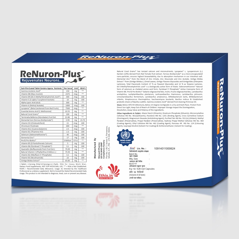 ReNuron Plus is a powerful dietary supplement formulated with a blend of natural ingredients designed to support and rejuvenate nerve cells. This unique combination of GLA (Gamma Linolenic Acid), Lycopene, Alpha Lipoic Acid (ALA), and other essential nutrients works synergistically to enhance nerve health, reduce inflammation, and protect against oxidative stress.