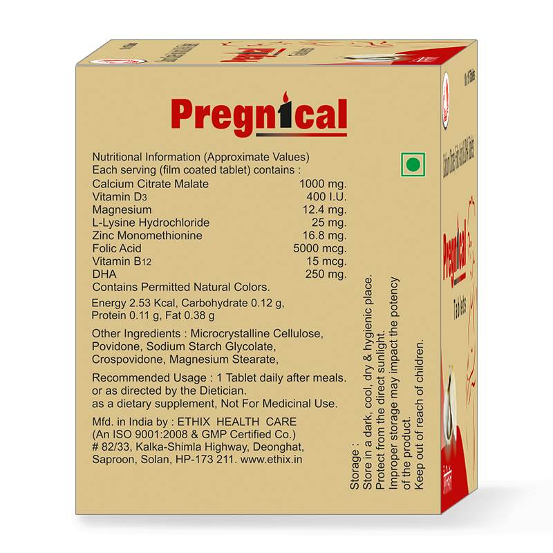 Pregnical tablets specially formulated to meet the demands of pregnant women which is important for building and keeping strong bones. And also treat all kind of bone problems during pregnancy and after delivery. It maintains healthy bones and teeth. Pregnical is used to prevent neural tube defect of a baby since the first trimester and also boosting the immune system, improving growth and brain development of the baby. So the antenatal mother can take Pregnical immediately after the confirmation of pregnancy.