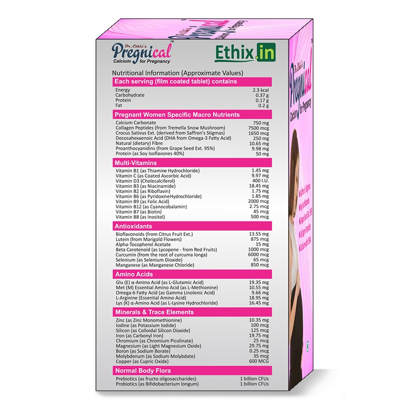 PregniCal is a comprehensive prenatal and postnatal supplement designed to support the nutritional needs of pregnant and lactating women. The combination of essential vitamins, minerals, and DHA ensures maternal health and optimal fetal development.