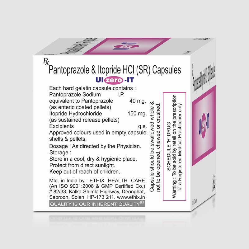 Ulzero IT is a combination of Pantoprazole and Itopride formulated in a sustained-release (SR) Capsulesule for the treatment of various gastrointestinal disorders. This powerful combination helps control acid-related issues while promoting better gastrointestinal motility, providing effective relief from digestive discomfort.
